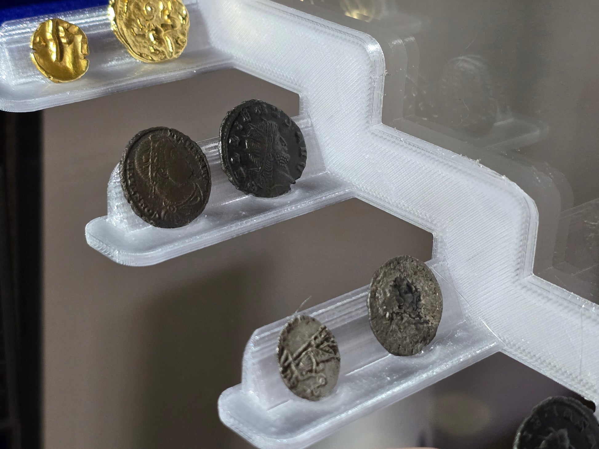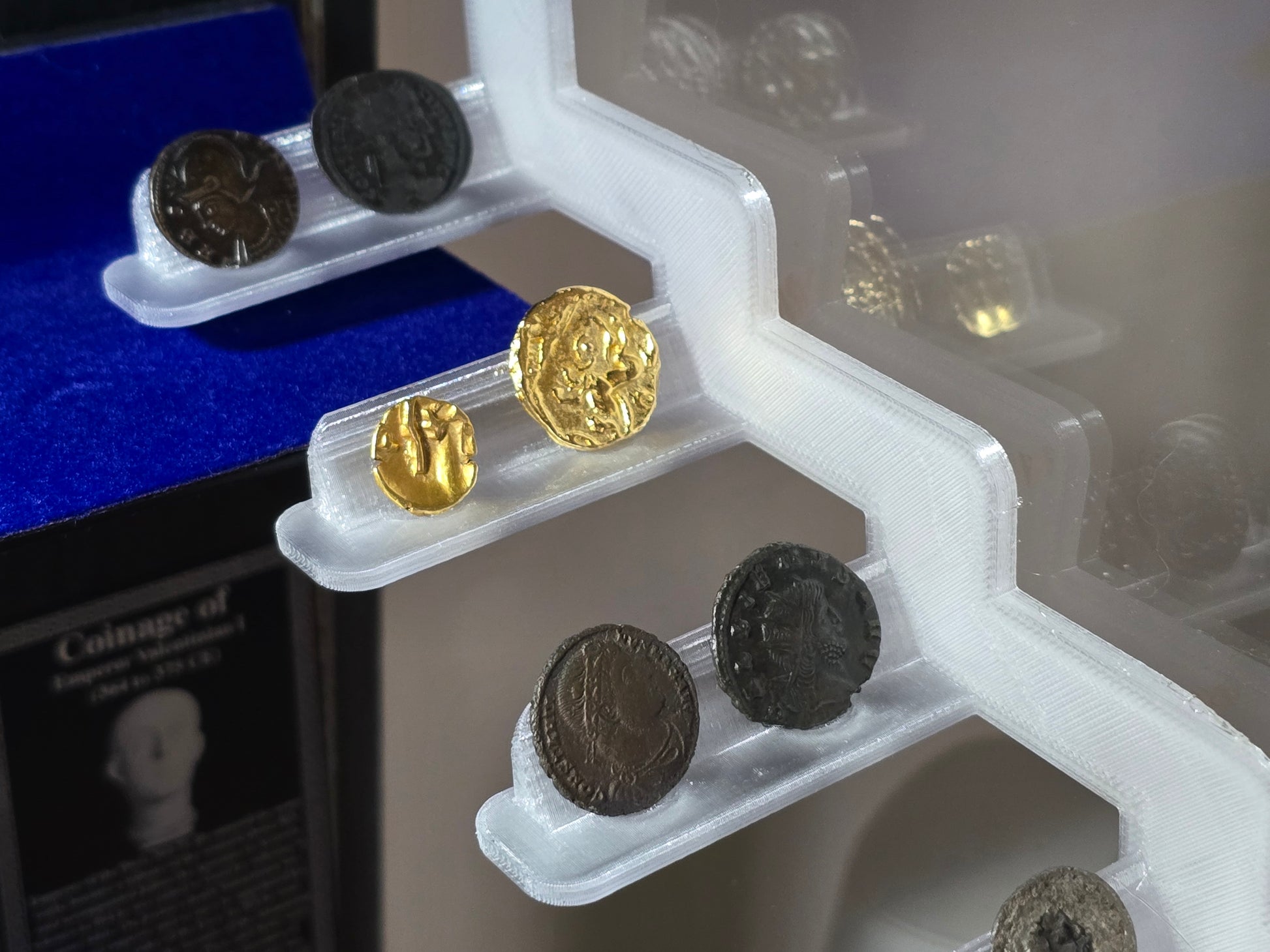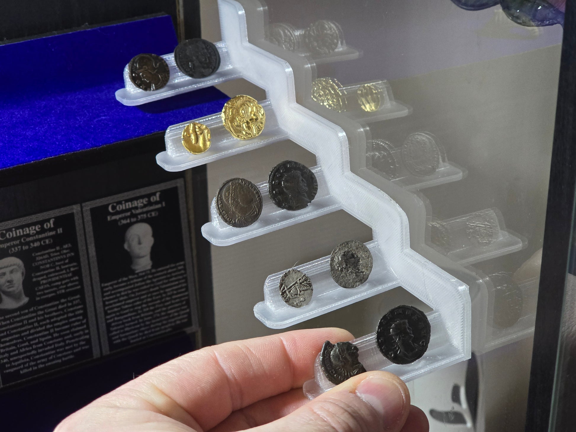 Angled Cabinet Side Mounts with accompanying coin stands are perfect for smaller to medium-sized hammereds, cut halves, and cut quarters.