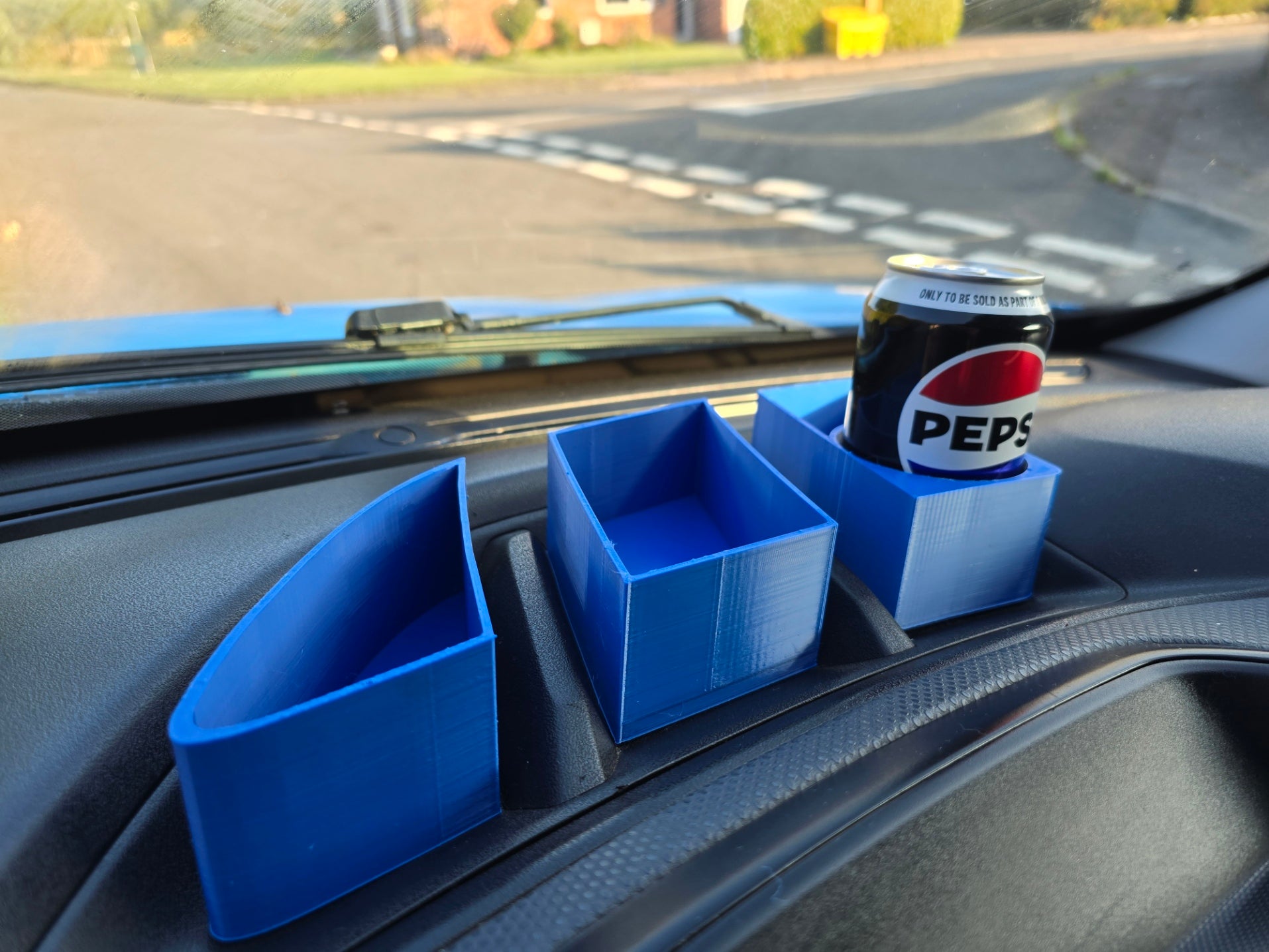 I found the existing trays to be too shallow, items would just slide straight off. Add to that, the Doblo doesn't have a decent drinks holder, I decided to design and make some custom shelves.