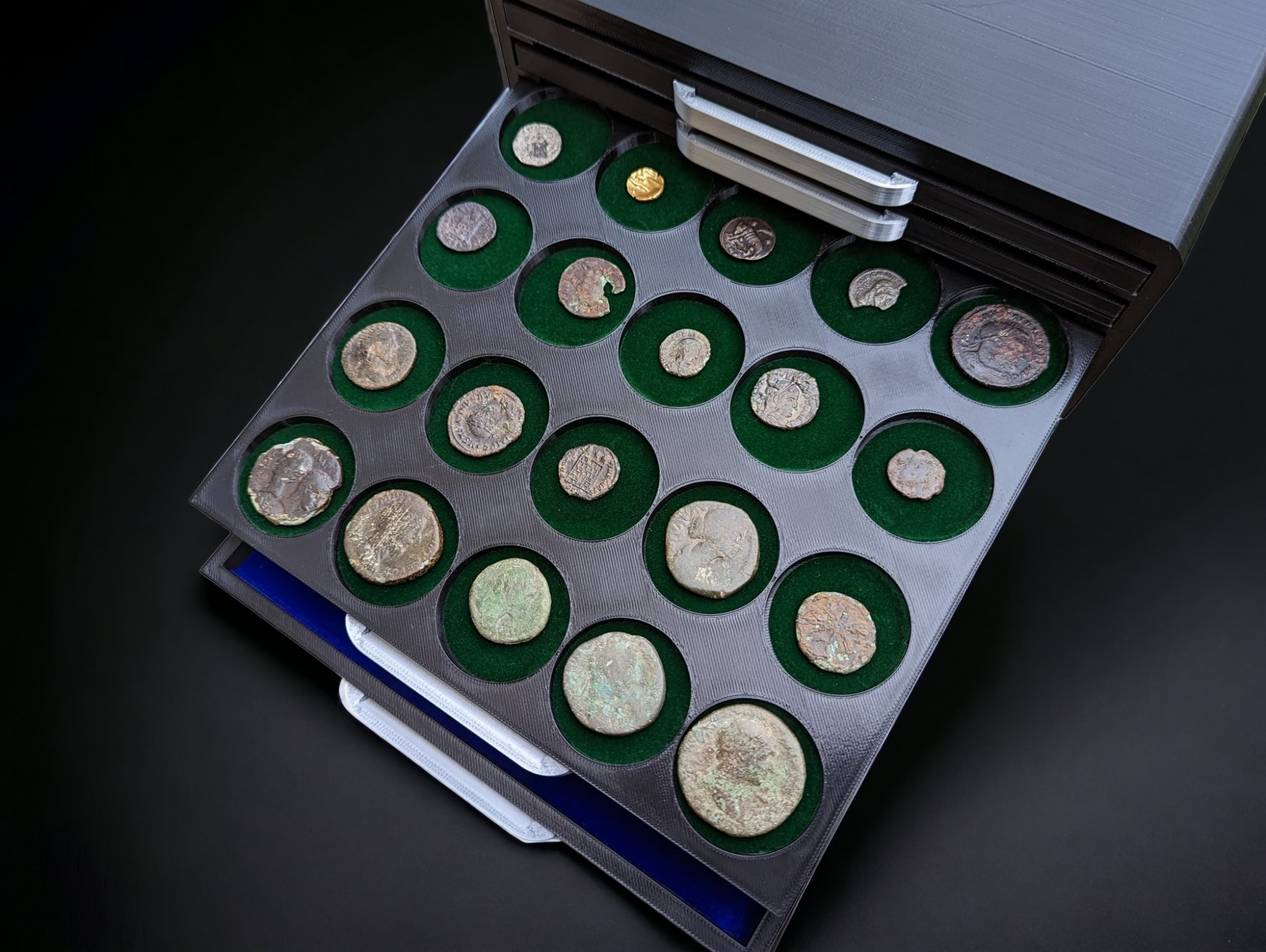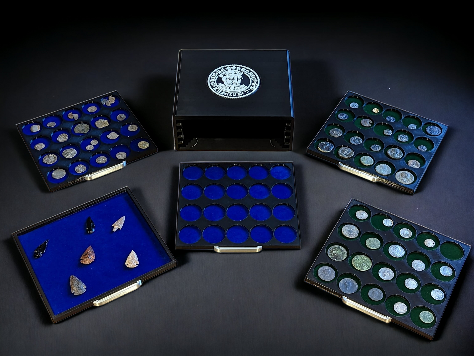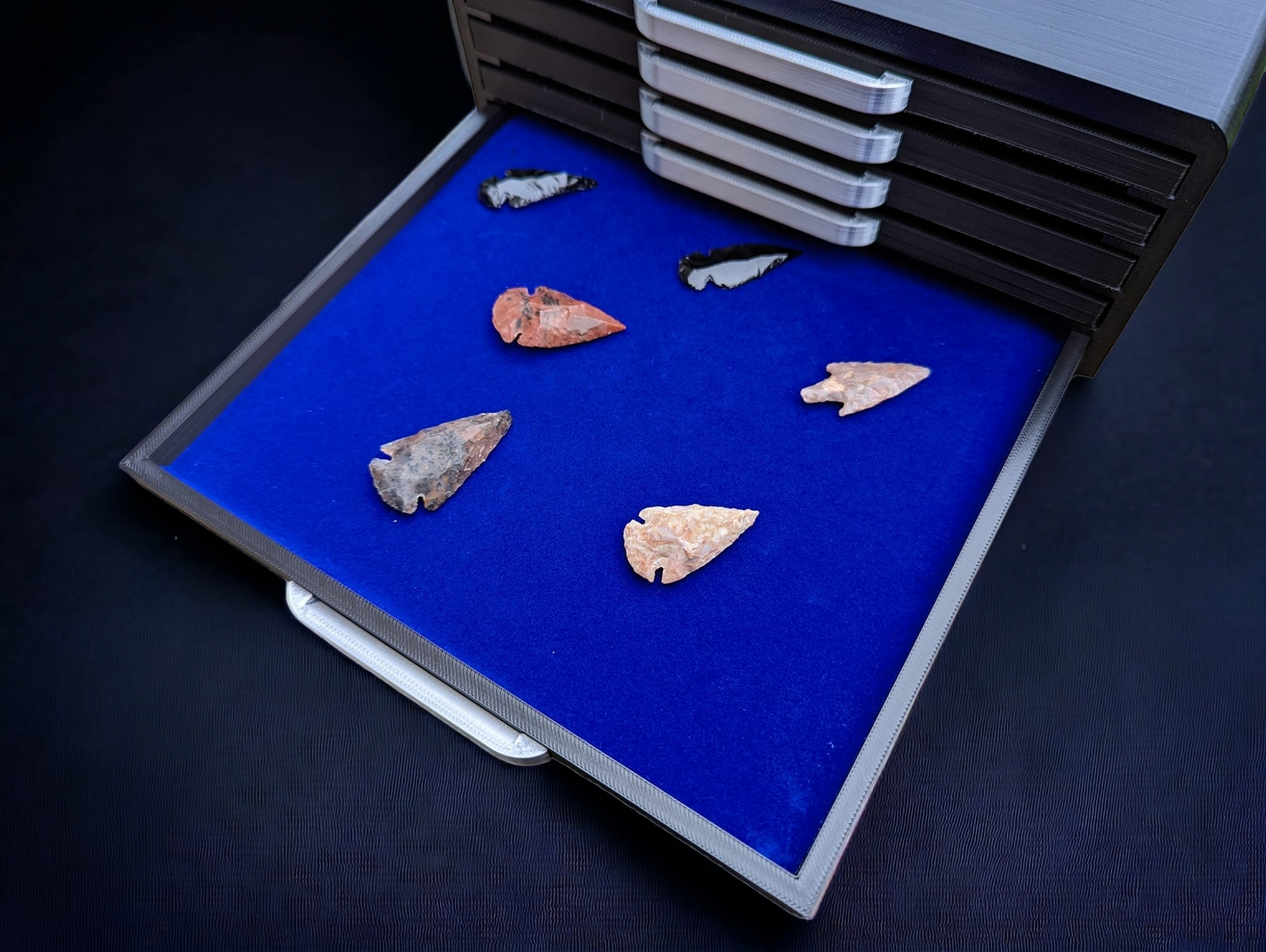 The artifact drawer has a large flat surface suitable for storing artifacts, badges, buttons and whorls and lots more up to 8mm thickness.