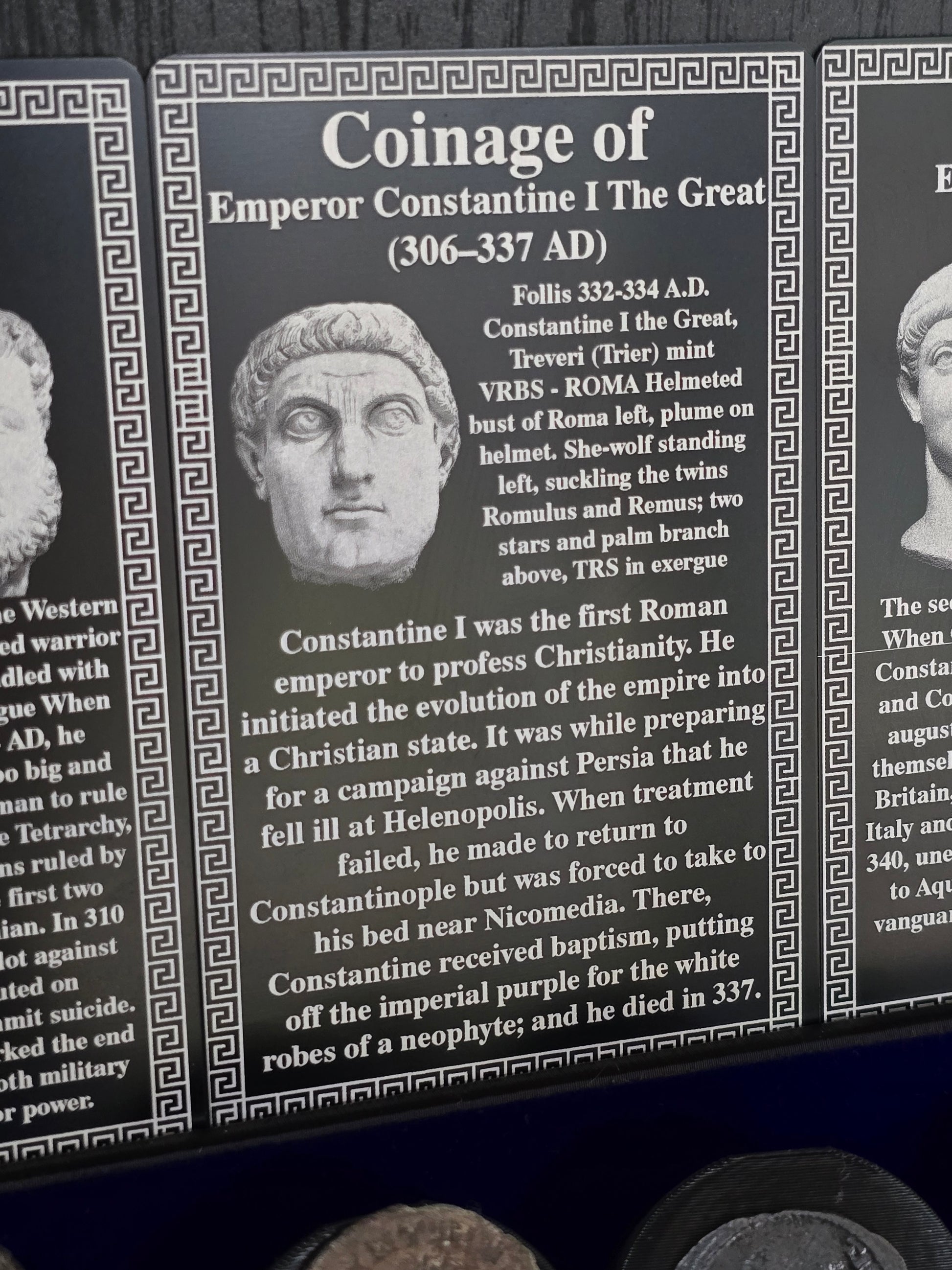Display your Roman and Celtic coins with pride with these custom engraved metal ID cards. Each card is laser engraved.