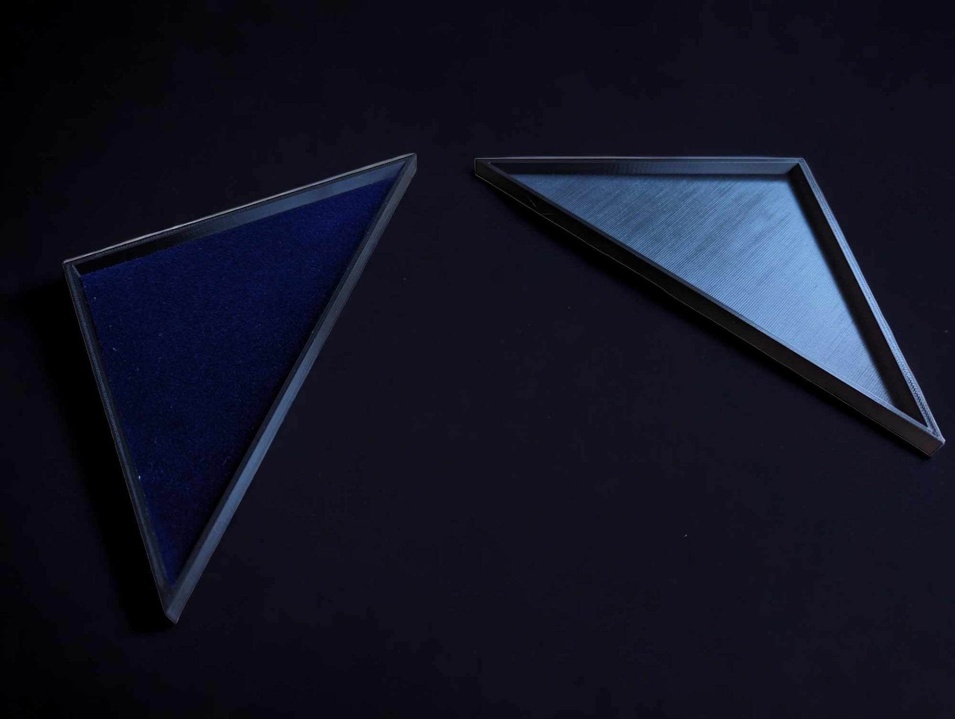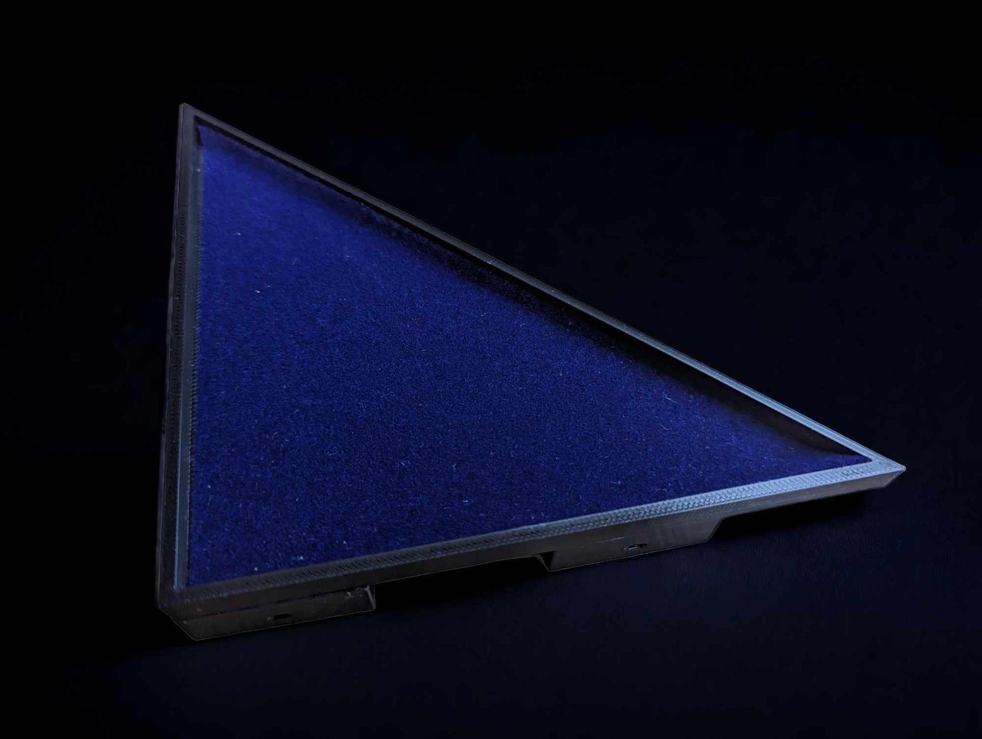Triangular Corner Trays / Shelves (Pair) have a 14cm width and depth, and custom sizes can be procured. Mounting is made effortless with the 3m pads included. Additionally, customers have a selection of tray and felt colors.
