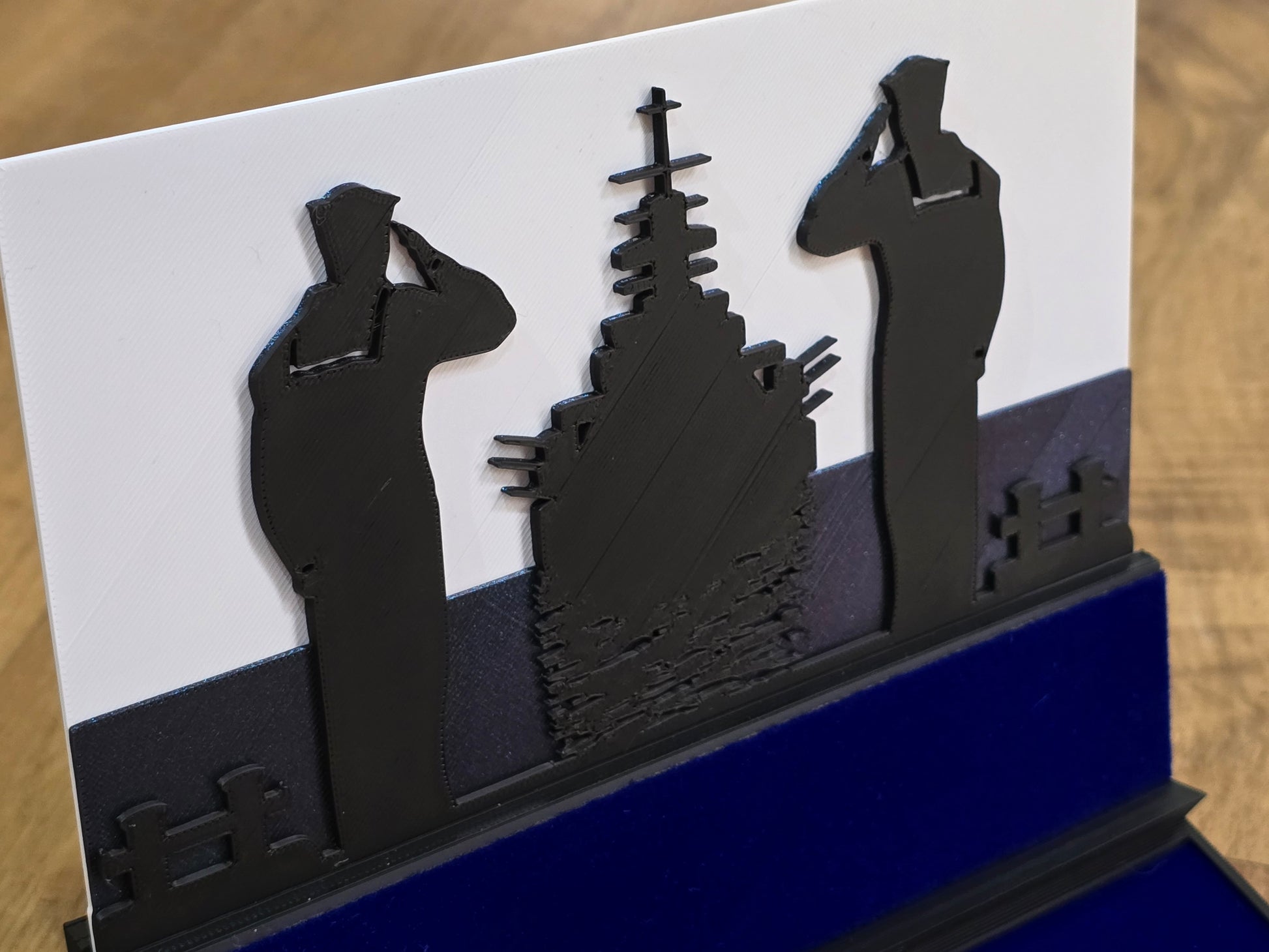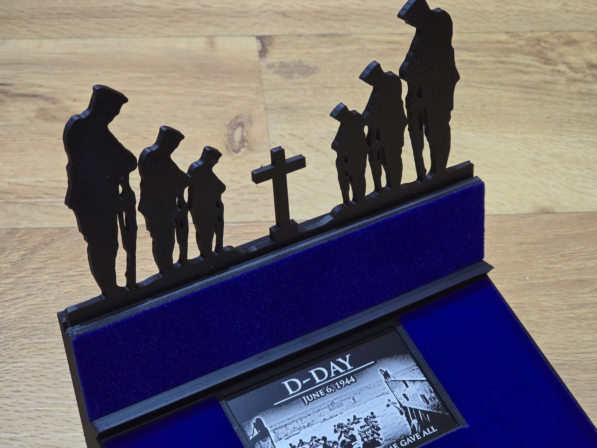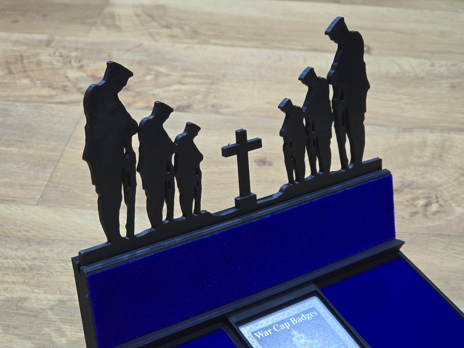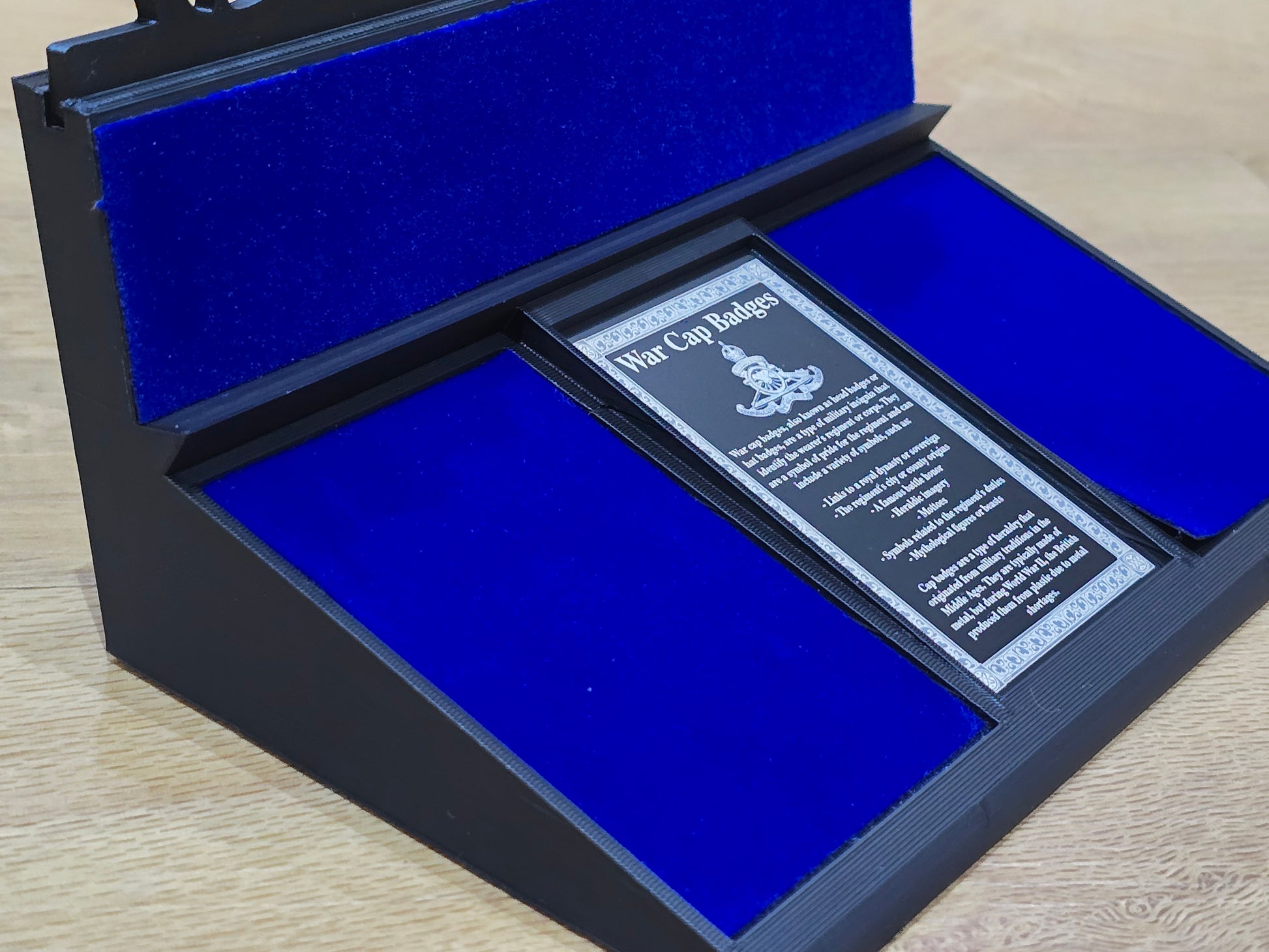 Two large angled felted areas and a felted shelf to display war memorabilia.